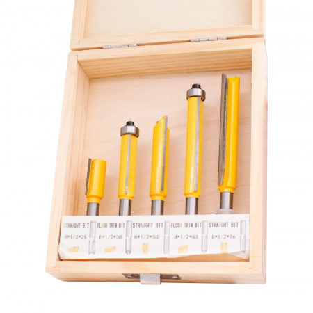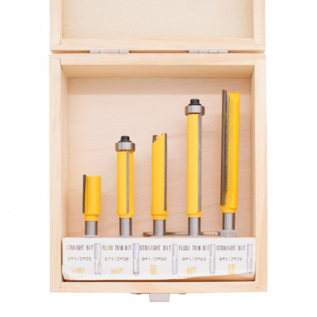 300.008 Набор фрез DELTA TOOLS пазовых/обгонных фрез 5шт. хв. S=8 применяется для выполнения различных видов фрезерных работ, таких как создание пазов, вырезание отверстий, контурная обработка и других операций.