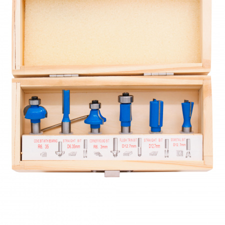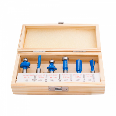 300.010 Набор фрез 6шт. DELTA TOOLS пазовые, обгонные, галтель, калевка, ласточкин хв. S=8 применяется для выполнения различных видов фрезерных работ, таких как создание пазов, вырезание отверстий, контурная обработка и других операций.