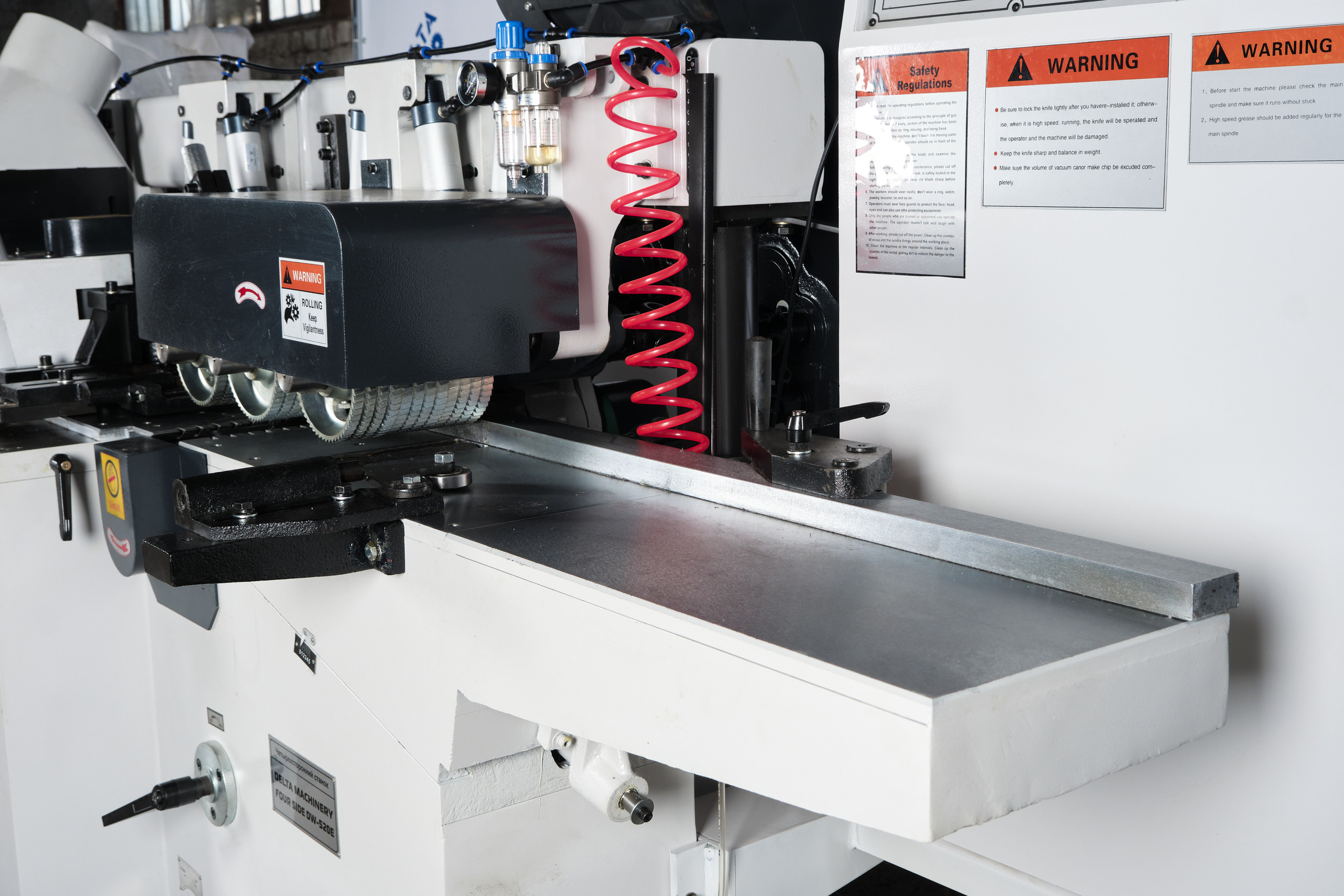 Четырёхсторонний станок DELTAMACHINERY FOUR SIDE DW-520H (5 шпинделей) предназначен для высокоточной четырехсторонней обработки деревянной заготовки с целью получения высококачественных изделий за один проход. После обработки на 4-х сторонних станках отпадает необходимость в последующем шлифовании профилированных и строганных поверхностей.