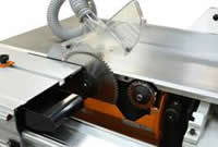 Предназначен для продольного, поперечного и углового раскроя плитных материалов (МДФ, ДСтП, ДВП и клееных щитов), облицованных и ламинированных, а также заготовок из массивной древесины, с предварительной подрезкой нижней кромки для исключения сколов.