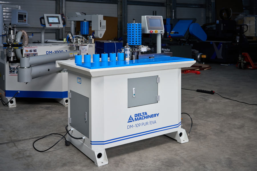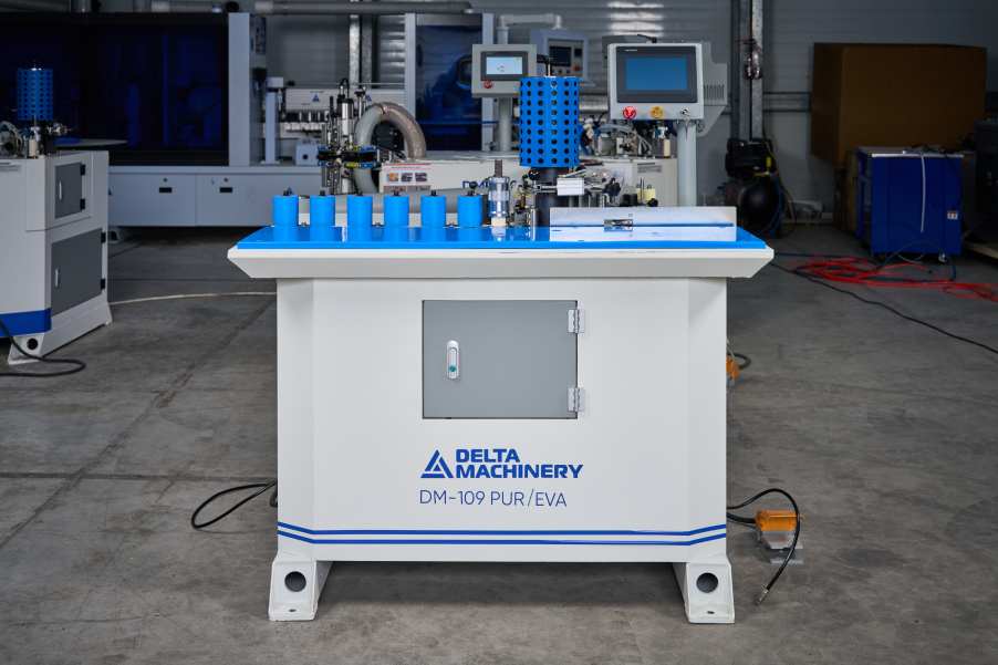 Станок оснащен универсальной клеевой ванной 1200мл позволяющей использовать при работе клей расплав EVA или PUR клей в зависимости от задач. Система подачи очистительной жидкости форсунчатого типа в зону прижима, для исключения налипания лишнего клеевого состава.