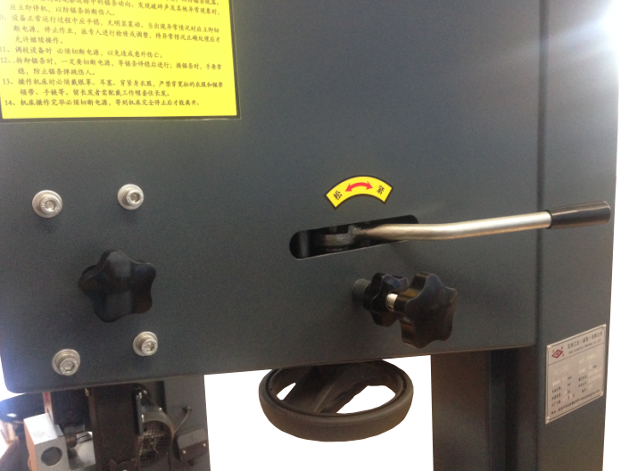 Быстрая смена пилы Устройство для быстрой смены пилы – оператор ослабляет рычаг и верхний шкив быстро опускается вниз для смены пилы. Затем рычаг перемещают в рабочее положение и новая пила быстро натягивается. Точная настройка натяжения пилы – с помощью маховика над столом. |