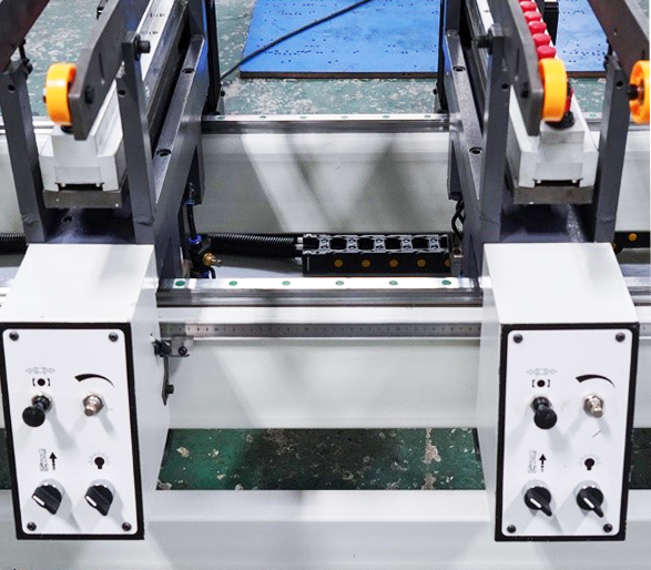 Позиционирование в размер осуществляется по линейке. Фиксация сверлильной группы на заданном размере осуществляется с помощью пневматики.