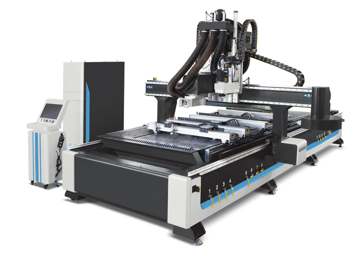 Центр обеспечивает автоматическую подачу дверного полотна в зону обработки, автоматическую базировку полотна, обработку с пяти сторон в полностью автоматическом режиме и дальнейшую автоматическую выгрузку.