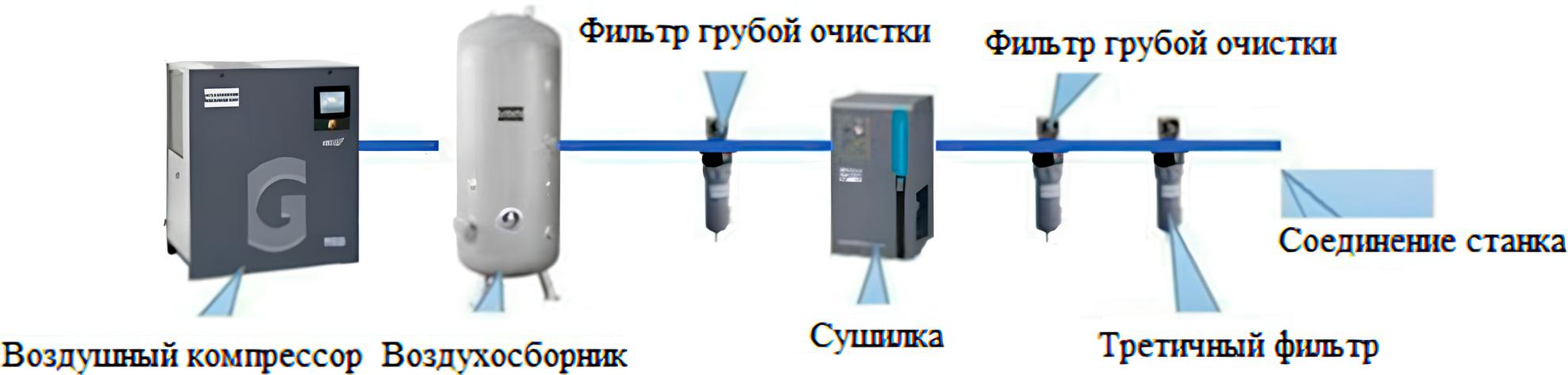 Если воздушная резка используется часто, то для достижения лучших результатов резки пользователям рекомендуется добавить устройство холодной сушки (как показано на рисунке); устройство холодной сушки может производить сжатый воздух под необходимой точкой росы. Таким образом, большое количество водяного пара и масляного тумана, содержащихся в нем, конденсируются в жидкие капли, отделяются газом и жидкостью, выпускаются из сушилки, а сжатый воздух высушивается.
