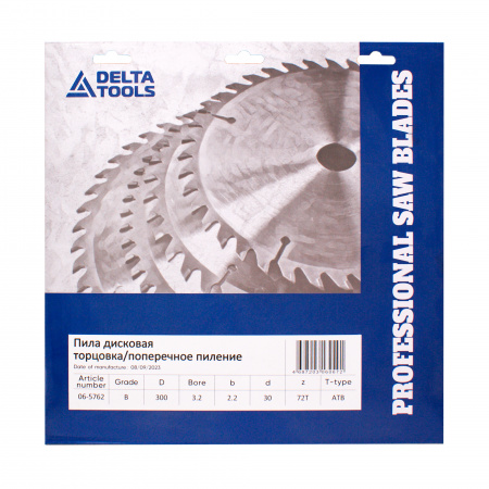 Пила дисковая DELTA TOOLS 300х30х3.2/2.2 Z=72 WZ торцовка/поперечное пиление с твердосплавными напайками предназначена для поперечного распила и торцовки древесины, листов фанеры, оргалита (ДВП).