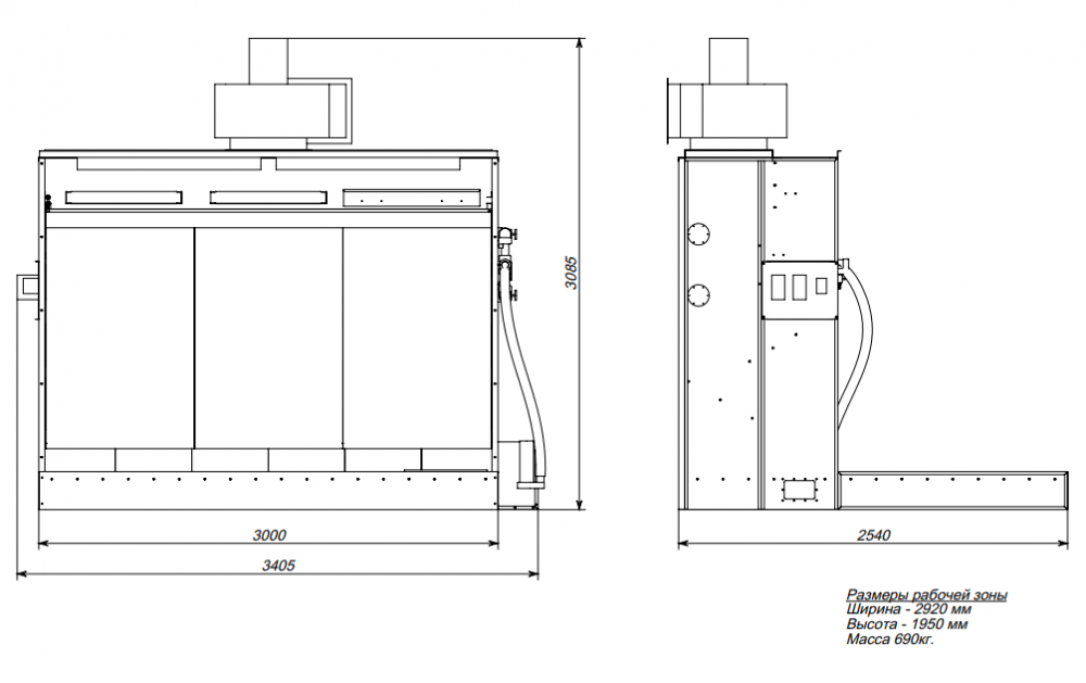Размер корпуса с вентилятором ДхГхВ: 3440х2550х3130 мм