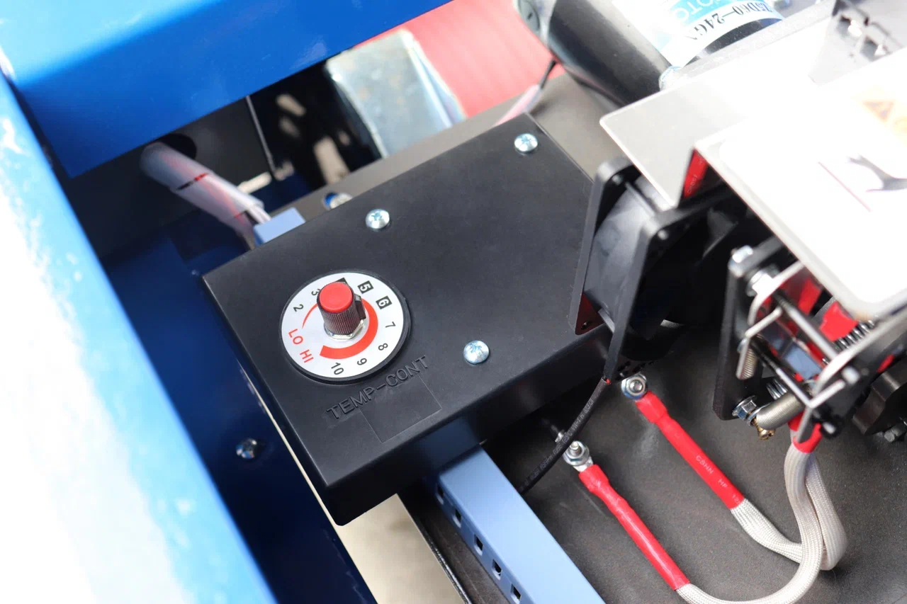 Доступны следующие регулировки: силой натяжения ленты, температурой нагревательного элемента и длиной выброса ленты.