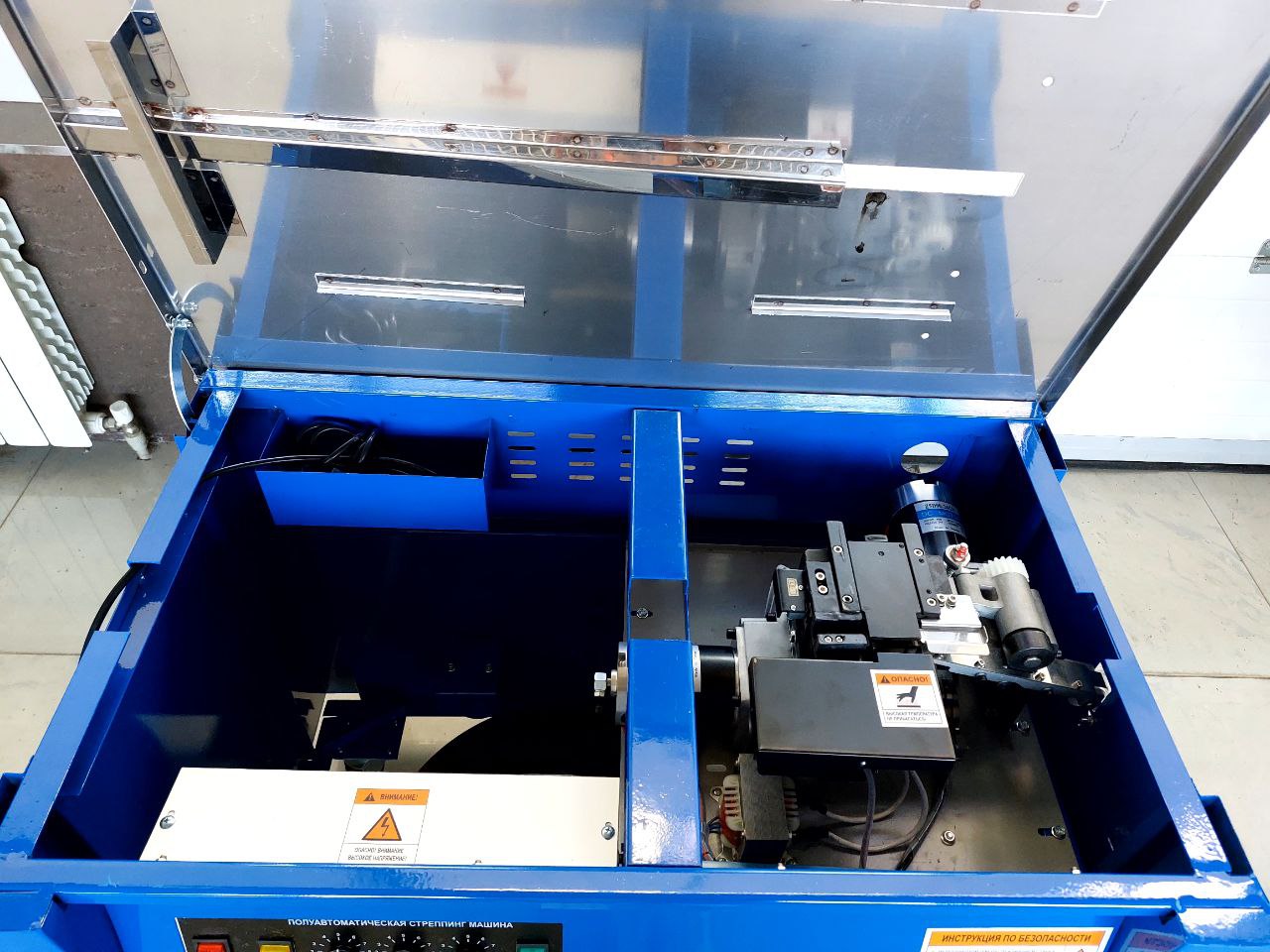 4. Машина автоматически производит натяжку, сварку и обрезку ленты.