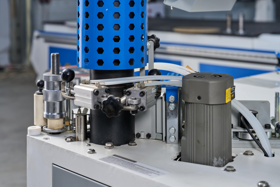 Система подачи кромочного материала с энкодером, позволяющая подавать точное количество кромки в зону приклеивания (параметр задается с пульта в мм).