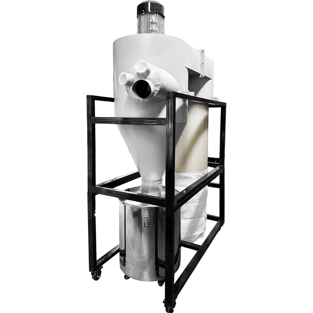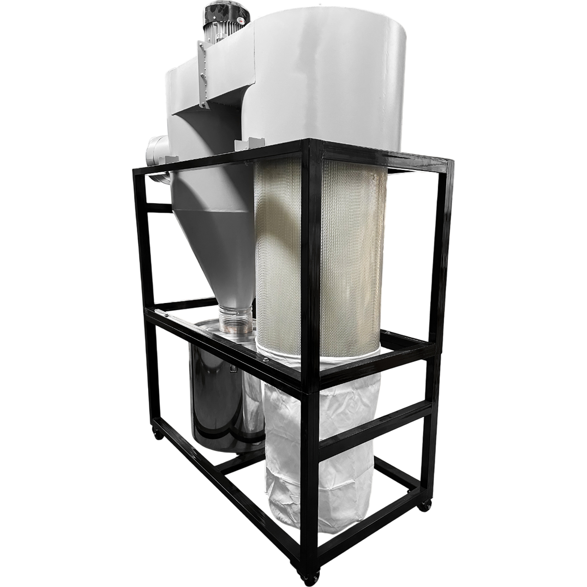 В данном отсеке происходит очистка воздуха от твёрдых загрязнений (стружка, опил и т.д.) при помощи центробежной силы происходит отделение «тяжелых» частиц от воздушного потока.