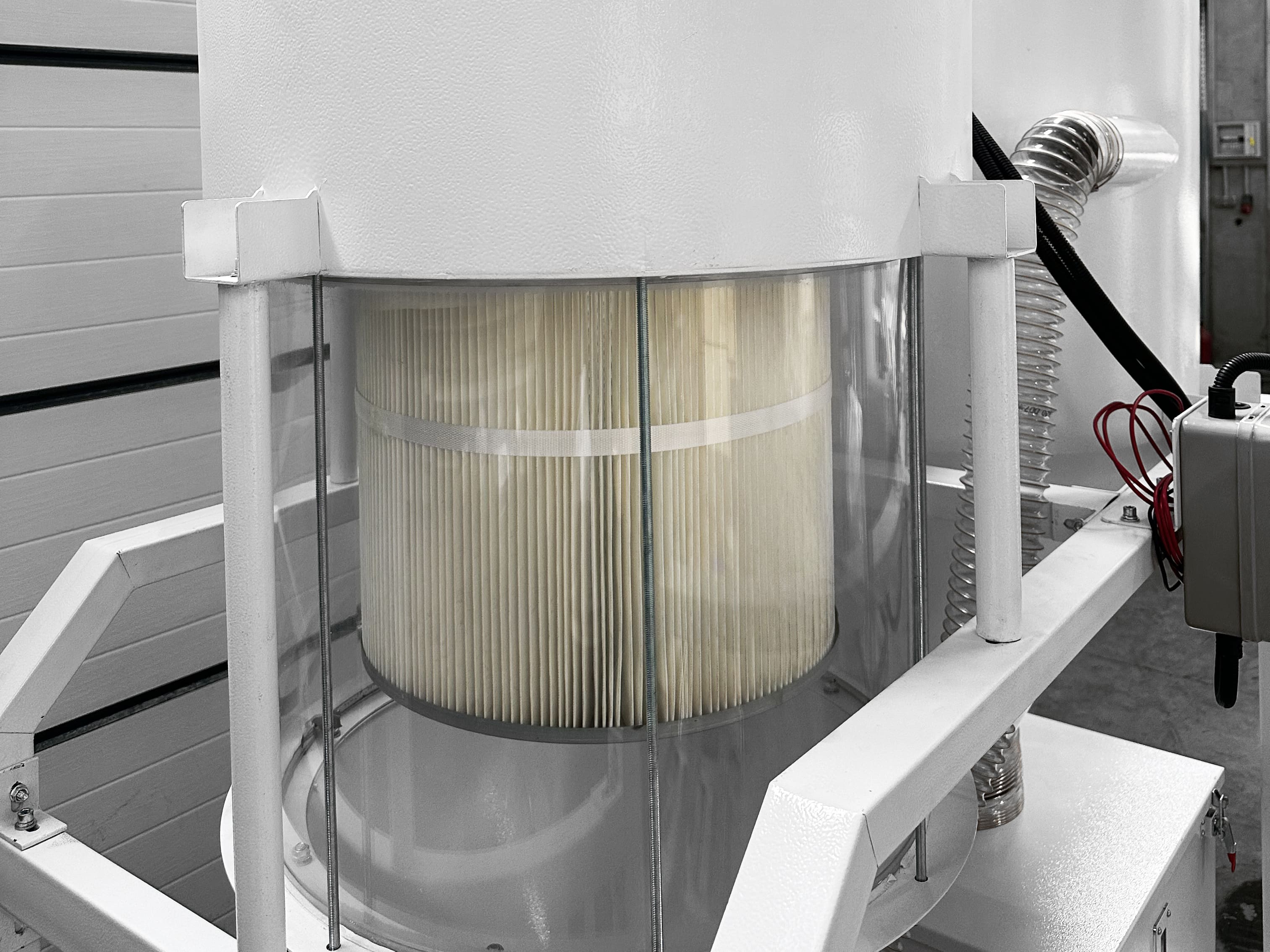 - Отсек с кассетным фильтром оснащенный импульсной пневмо продувкой