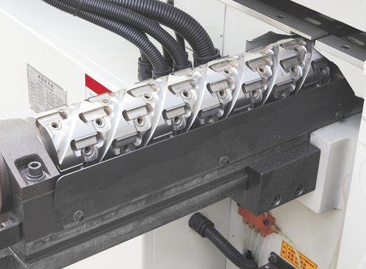 Узлы механизма подачи находятся сбоку станка и закрыты поворотным кожухом, что обеспечивает легкий и удобный доступ к ним для обслуживания.