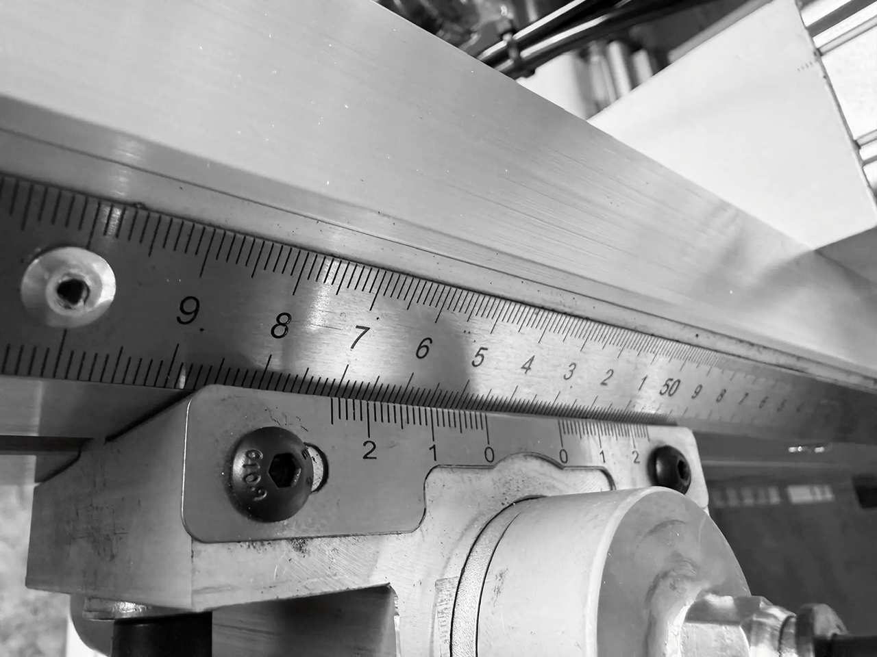Фиксация траверсы на заданном размере производится с помощью механического тормоза, активируемого переключателем, расположенным рядом с электронным табло.