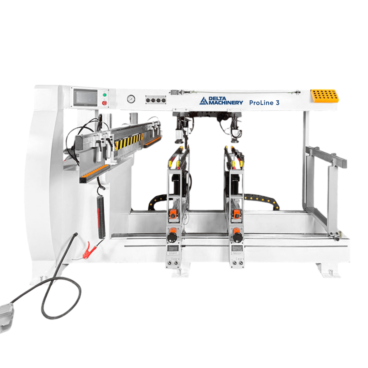 Все силовые и управляющие кабели и шланги скоммутированы в специальной трек-шине, это обеспечивает надежную и безопасную работу сверлильных групп при постоянном пере-мещении на разные размеры.