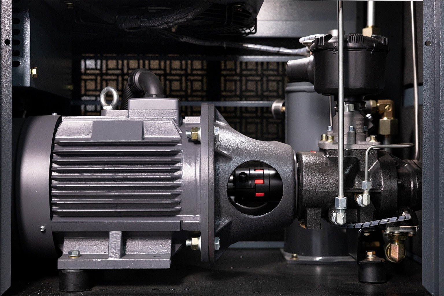 Клиновые ремни передают до 97% КПД с электродвигателя на винтовой блок, а также способствуют исключению вибрационных нагрузок во время пуска компрессора. Конструкция максимально проста, у неё самый высокий показатель удобства обслуживания приводных механизмов. Общая масса компрессора будет выше, чем на прямом приводе, что способствует устойчивости конструкции к вибрации и раскачиванию.