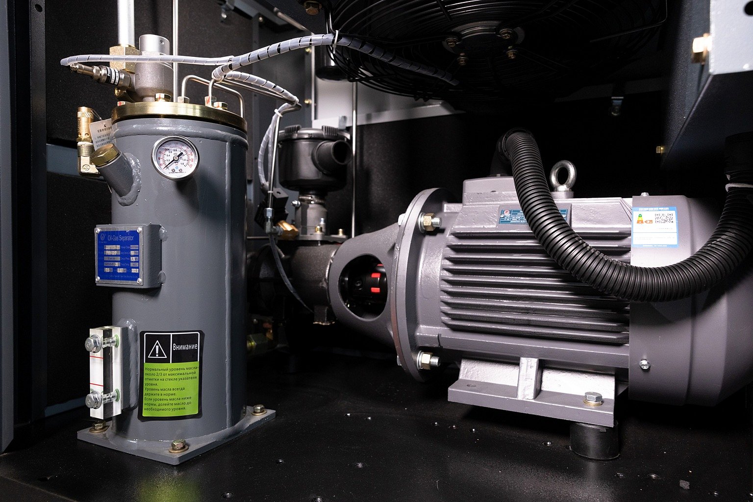 В вертикально расположенном маслобаке снижает остаточное содержание масла в сжатом воздухе до 3 мг/м3.